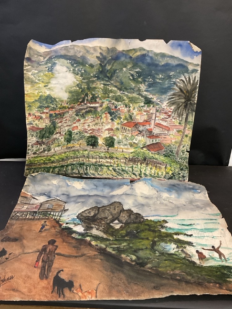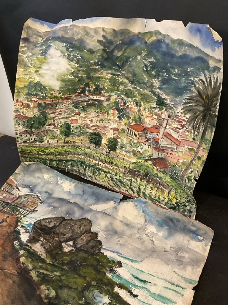 Walt Dehner (American, 1898-1975) Two (2) Island Watercolors . Madeira Funchal c.1935 and Edge of La Perla Puerto Rico.