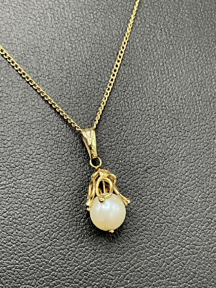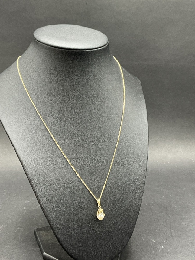 Estate 18" 14K Yellow Gold Pearl Solitaire Necklace.