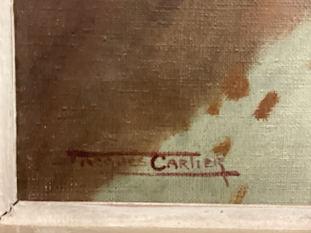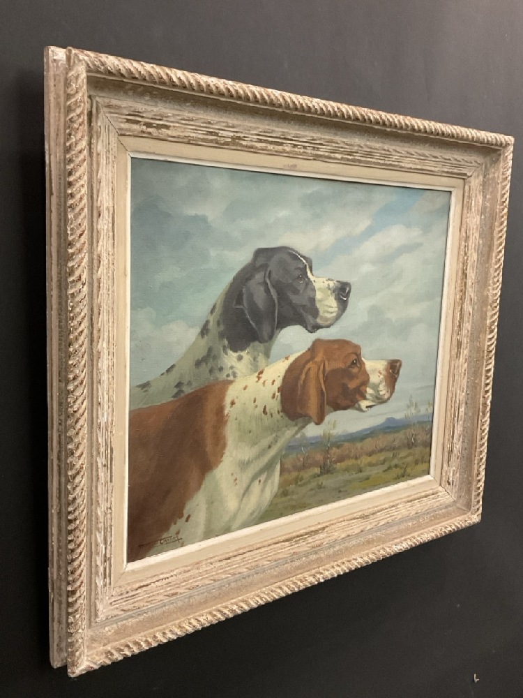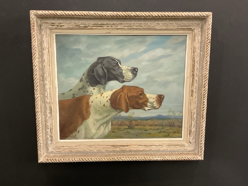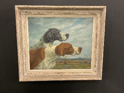 Jacques Cartier (French, 1907-2001) Sporting Pointer Dogs on Point.Oil on canvas. Signed lower left Dimensions 16 1/2 by 21” and 21” x 25” framed.