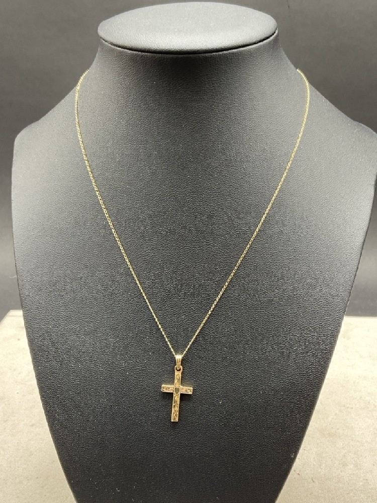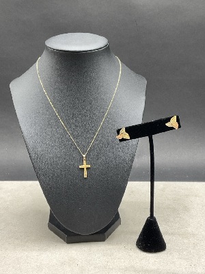 14 K Earrings and Cross Pendant Necklace .