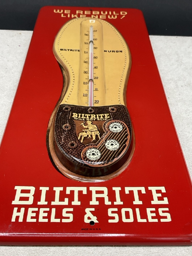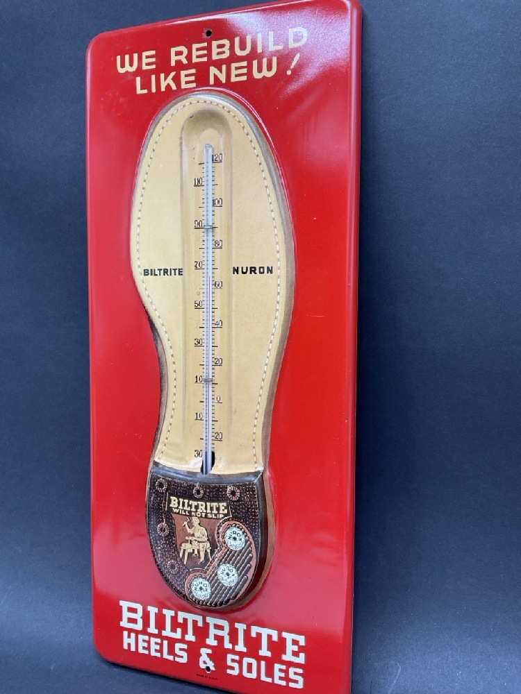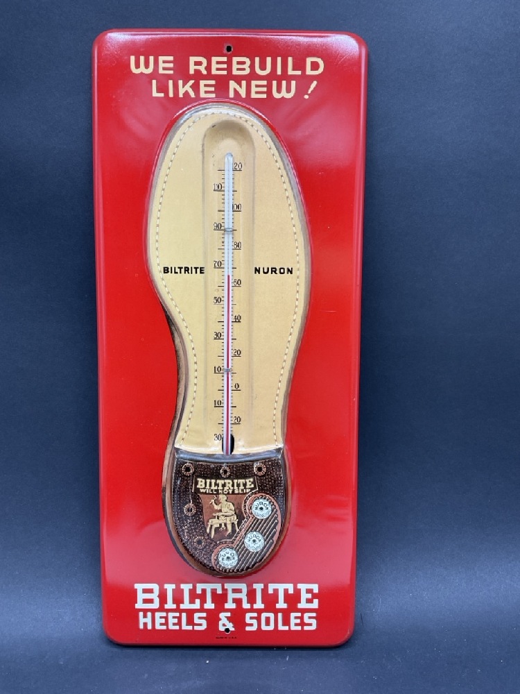 BILTRITE Heels and Soles Advertising Tin Thermometer.