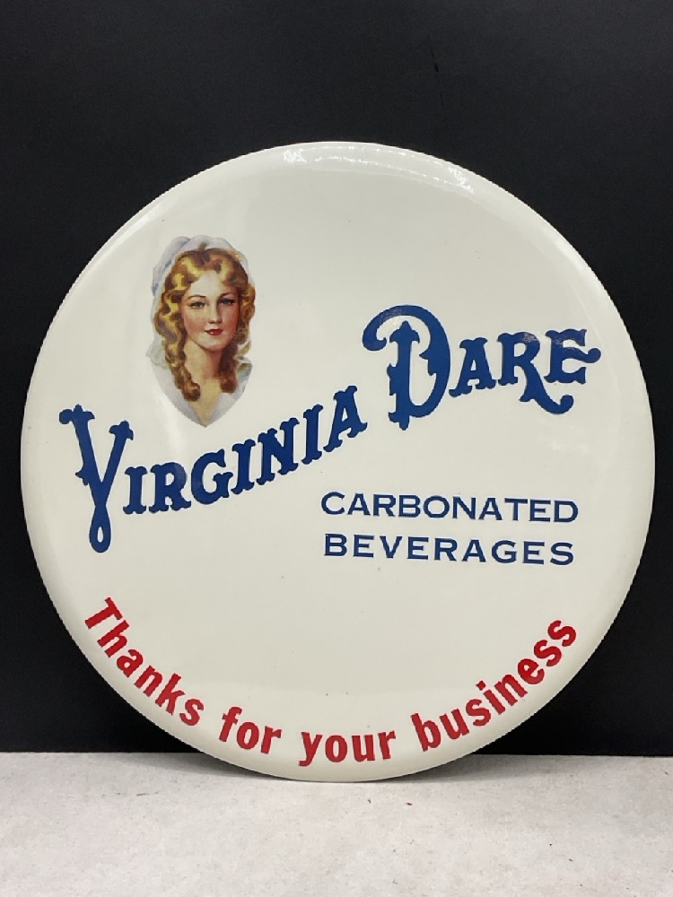Vintage Virginia Dare Carbonated Beverages Button Store Advertising Sign.