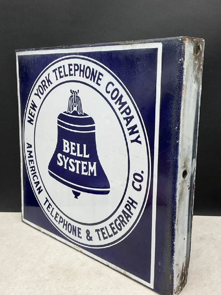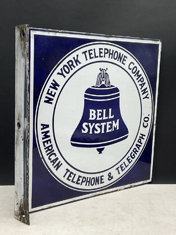 Bell System Double Sided Side Mount Cobalt Blue Enameled Sign
