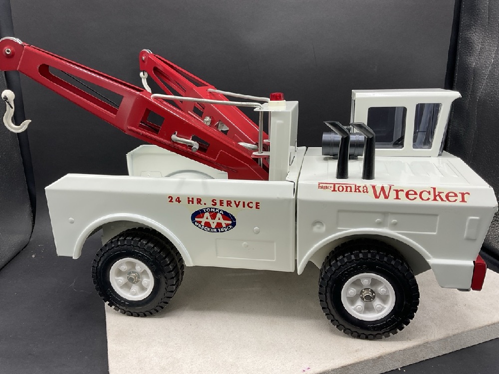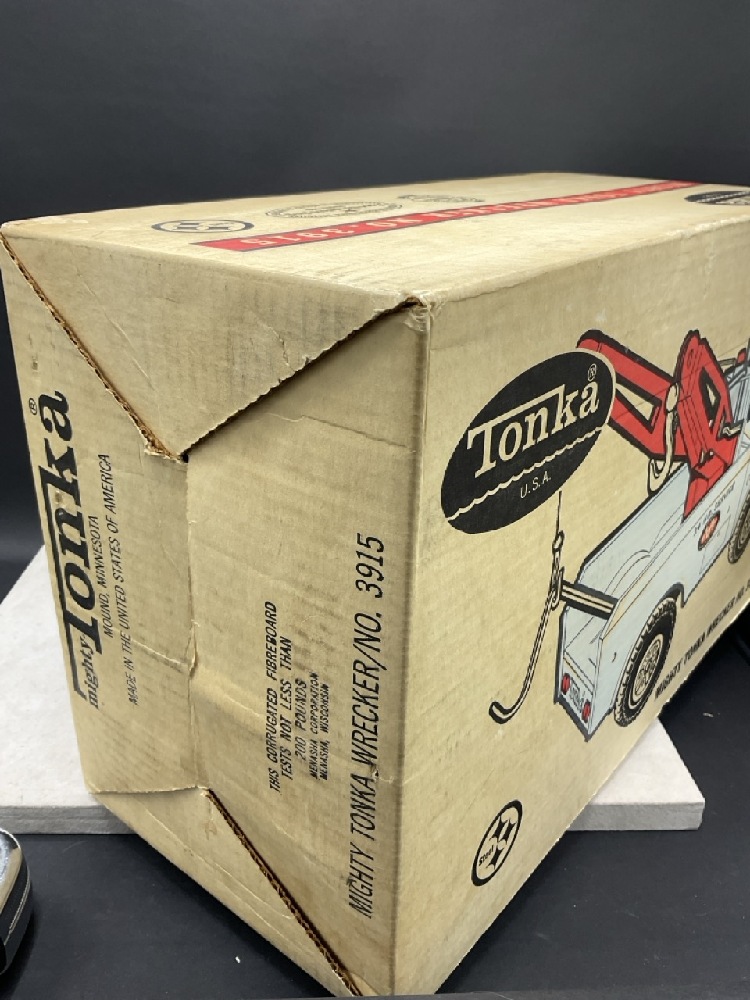 Vintage Tonka Wrecker No. 3915 in Box. Appearing to be never used. Some scuffs present and decal is crackling. A pristine truck overall with original box.