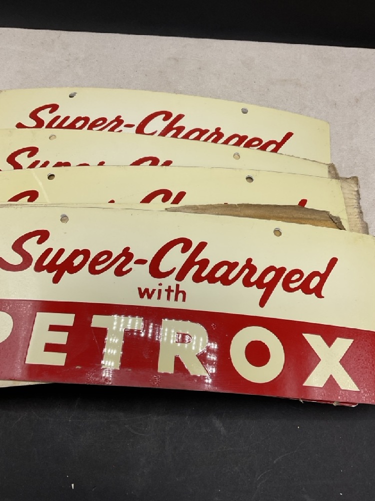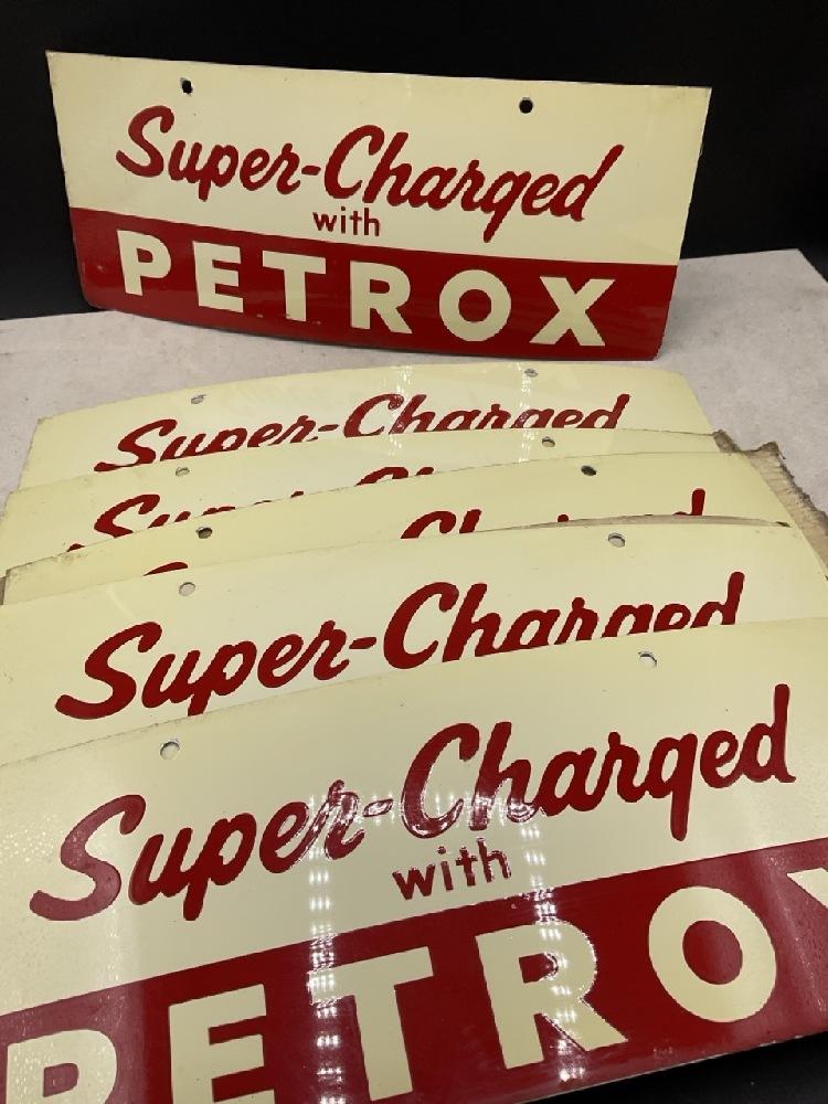 Six (6) Super-Charged with Petrox Sky Chief Texaco Gas Tank Signs.