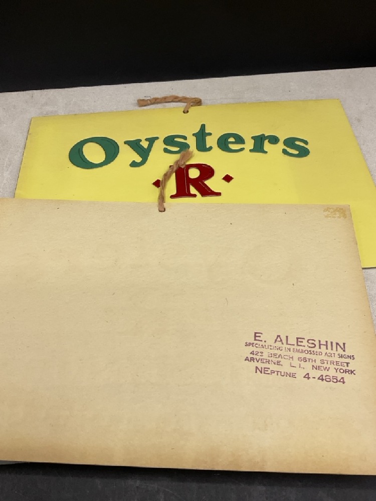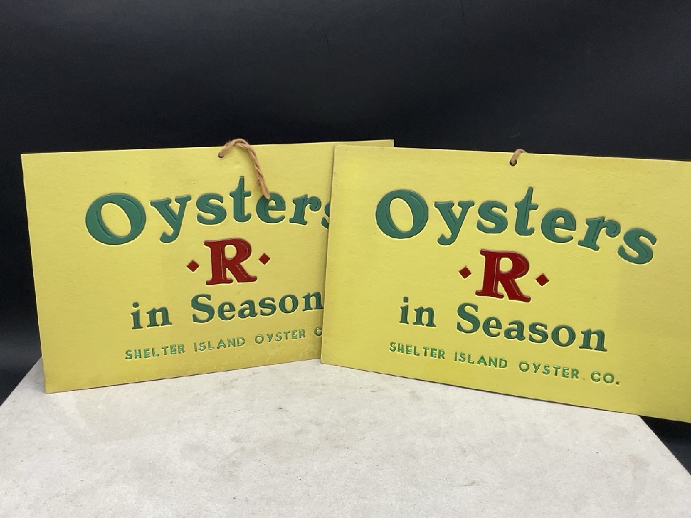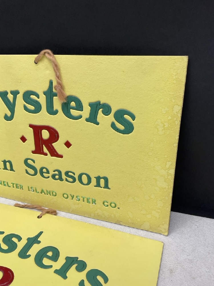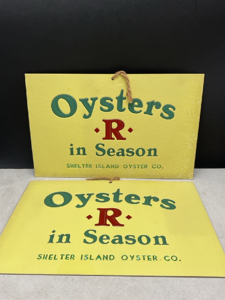 Oysters “R” in Season Shelter Island Oyster Co. Hanging Wall Signs. Heavy cardboard.