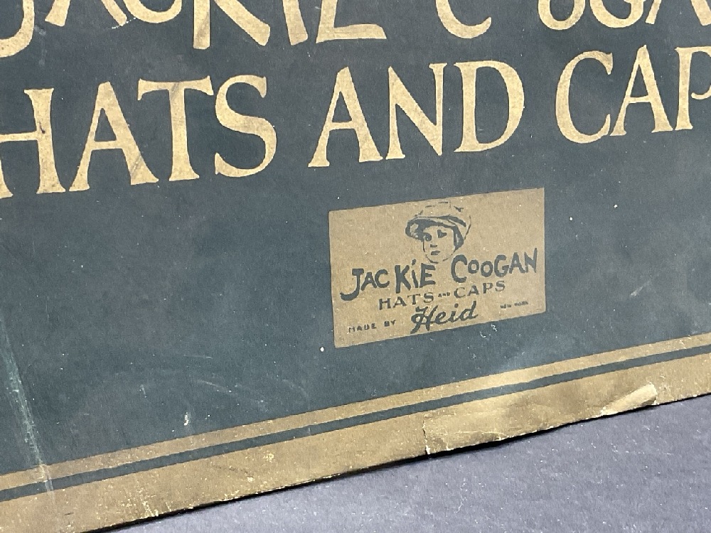 Jackie Coogan Hats and Caps Cardboard Easel Back Advertising Sign Heid New York.