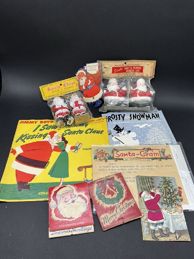 Mixed Vintage Christmas Lot - Records, Salt & Pepper Shakers.
