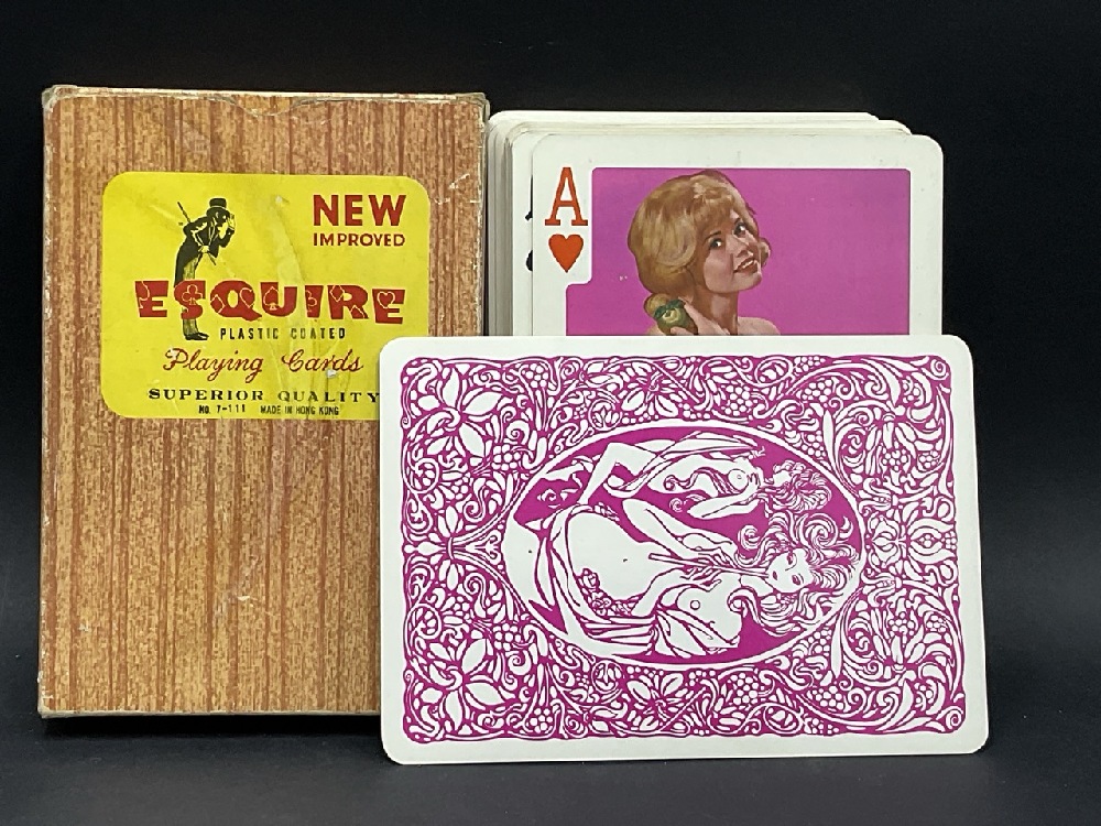 Vintage Esquire Deck of Risque Nude Playing Cards. Complete with 54 cards. One card has corner crease. Box has wear consistent with age. Please see photograph preview.