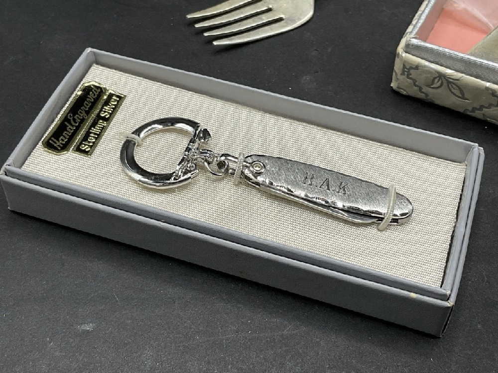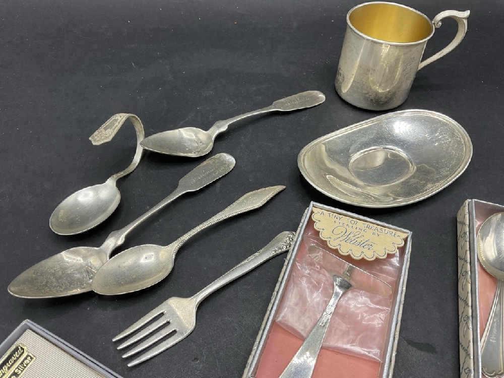 Estate Compiled 10pc. Sterling Silver Flatware, Cup and Keychain.