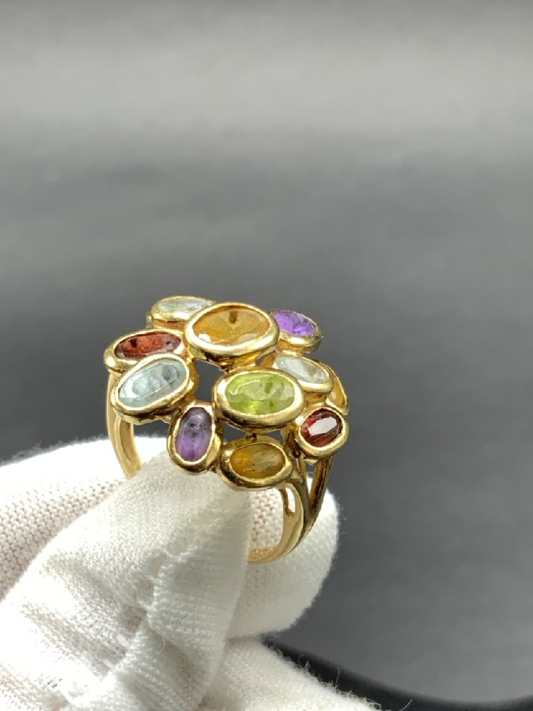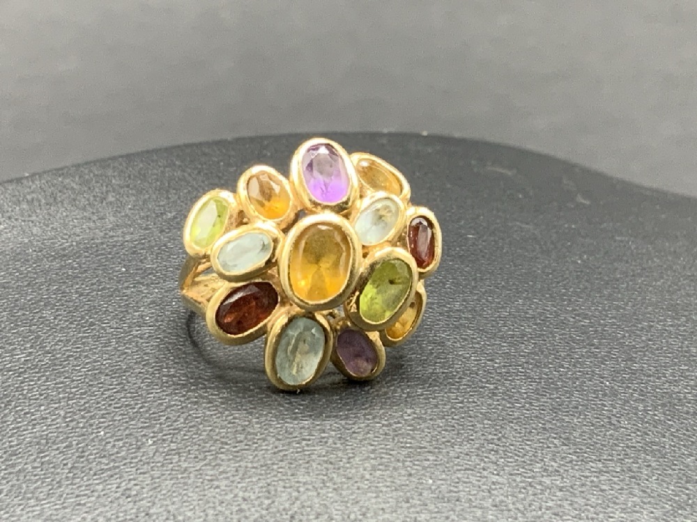 14K Yellow Gold Mosaic Multi Gemstone Ring.