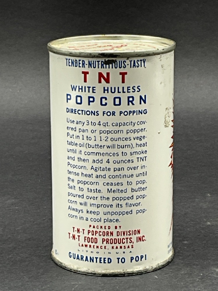 TNT Pop Corn Tin “White Hulless Kernels” 10 oz. UNOPENED!!