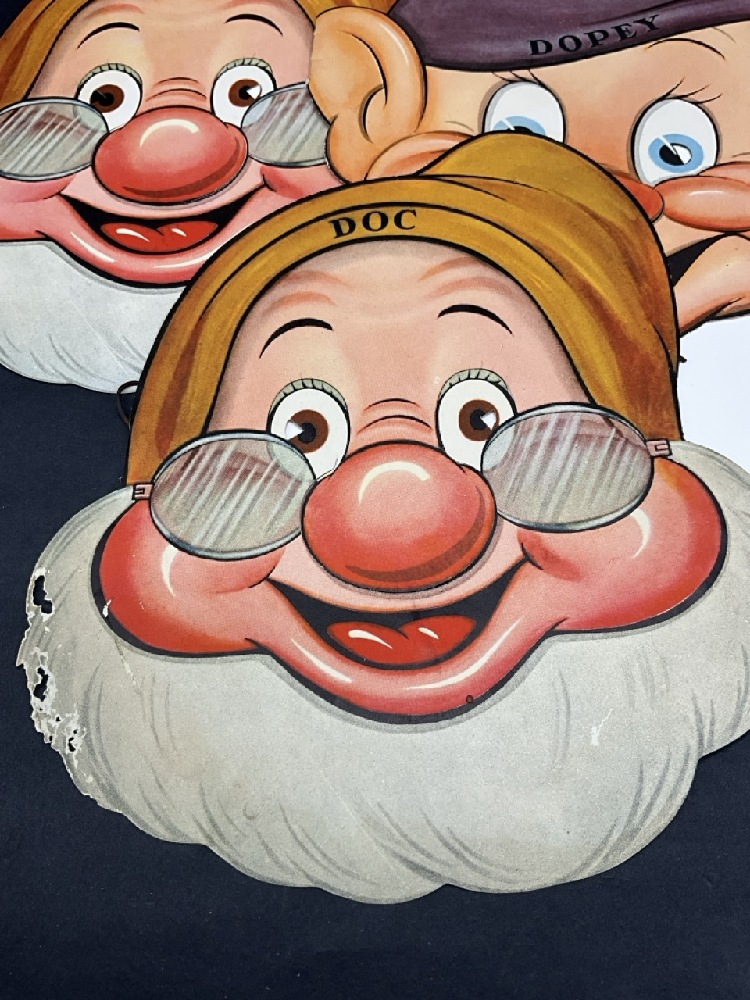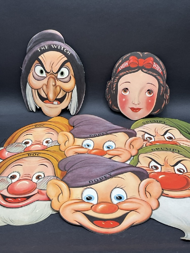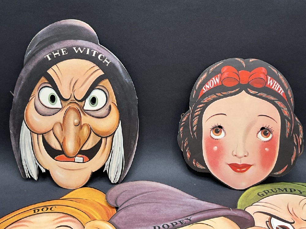 Par-T-Masks 1937 Walt Disney Enterprise. Eight (8) Masks Never Used. The Witch, Snow White, DOC (2), Dopey (2), Grumpy (2)