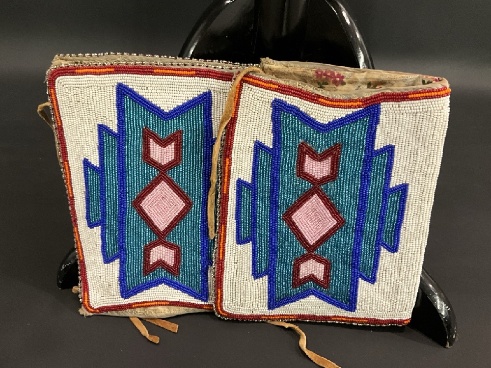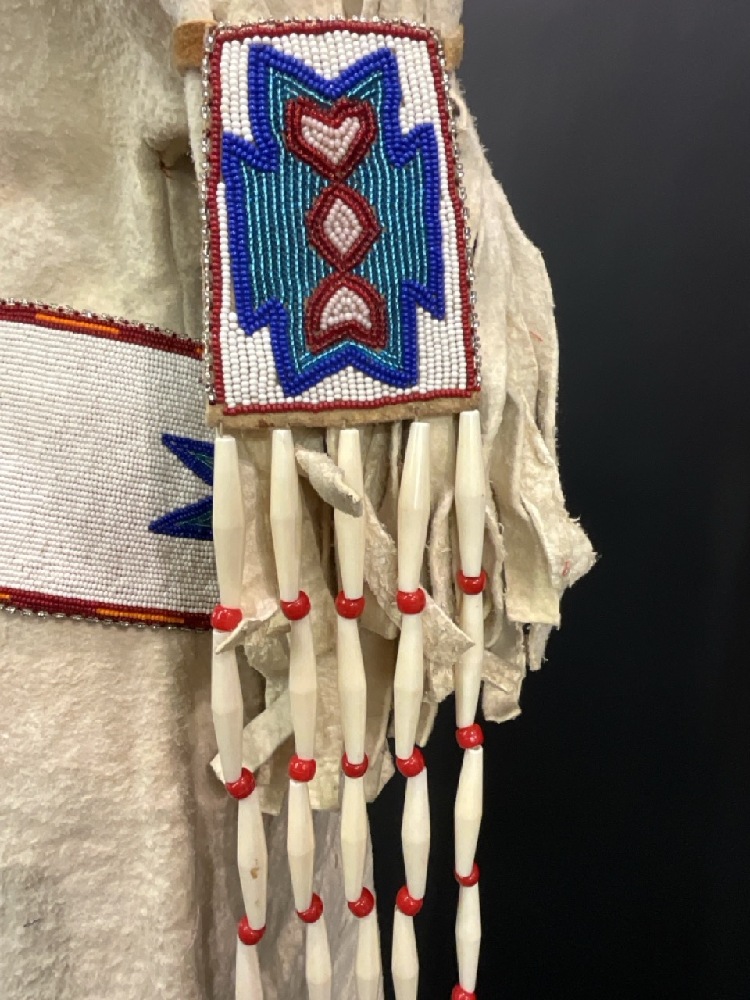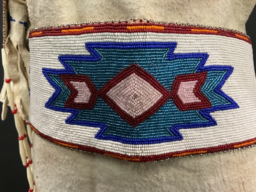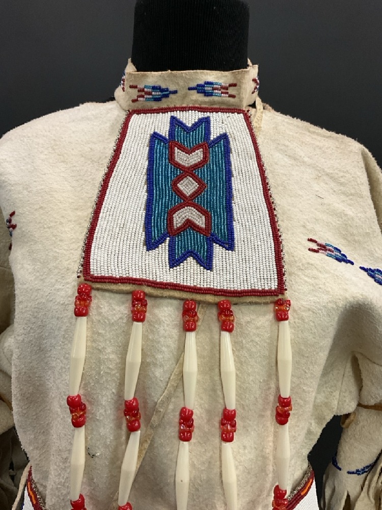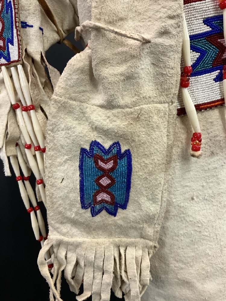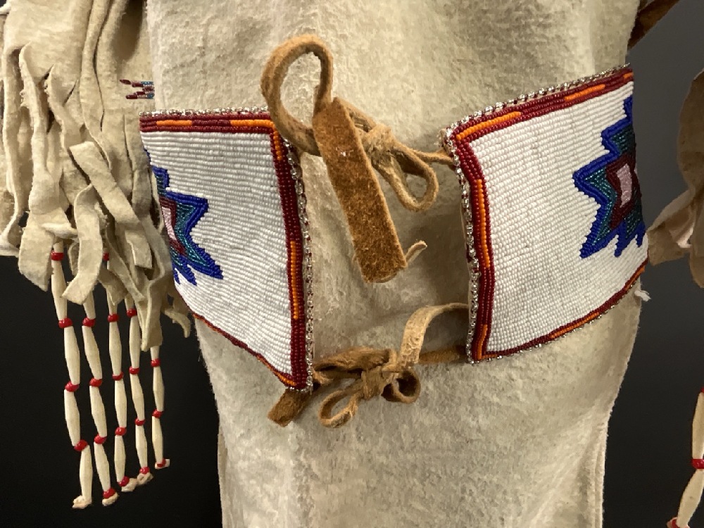 Older Native American Indian Buckskin Dress w/ Beadwork Accessories.