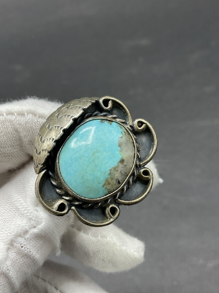 Vintage Navajo Indian Sterling Silver Turquoise Ring.
