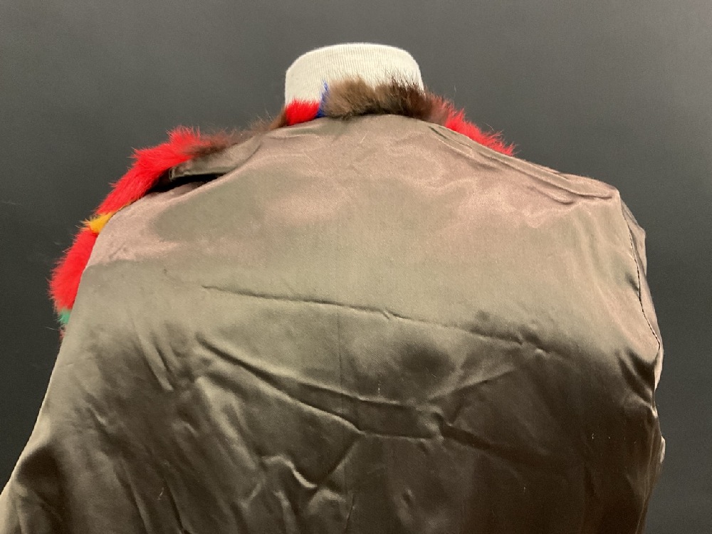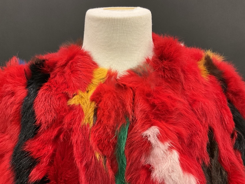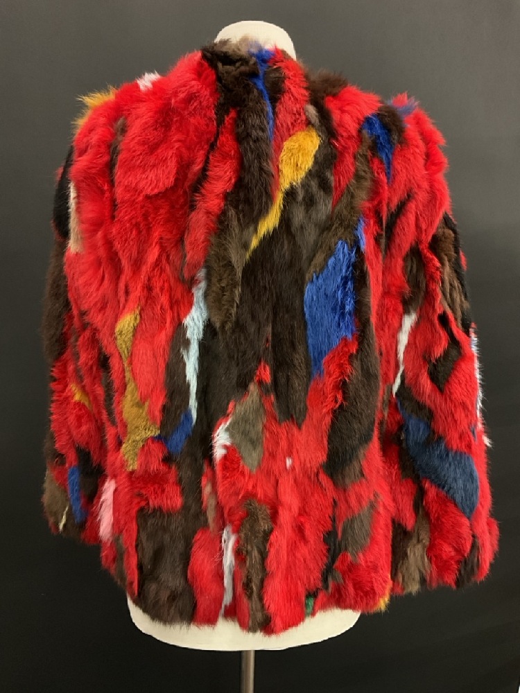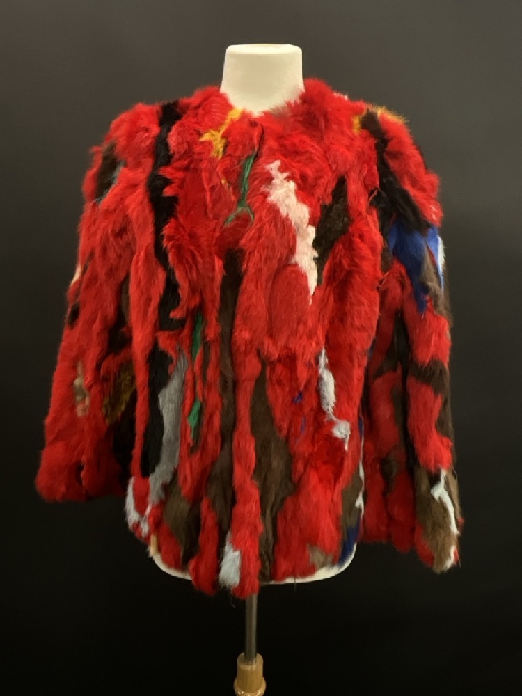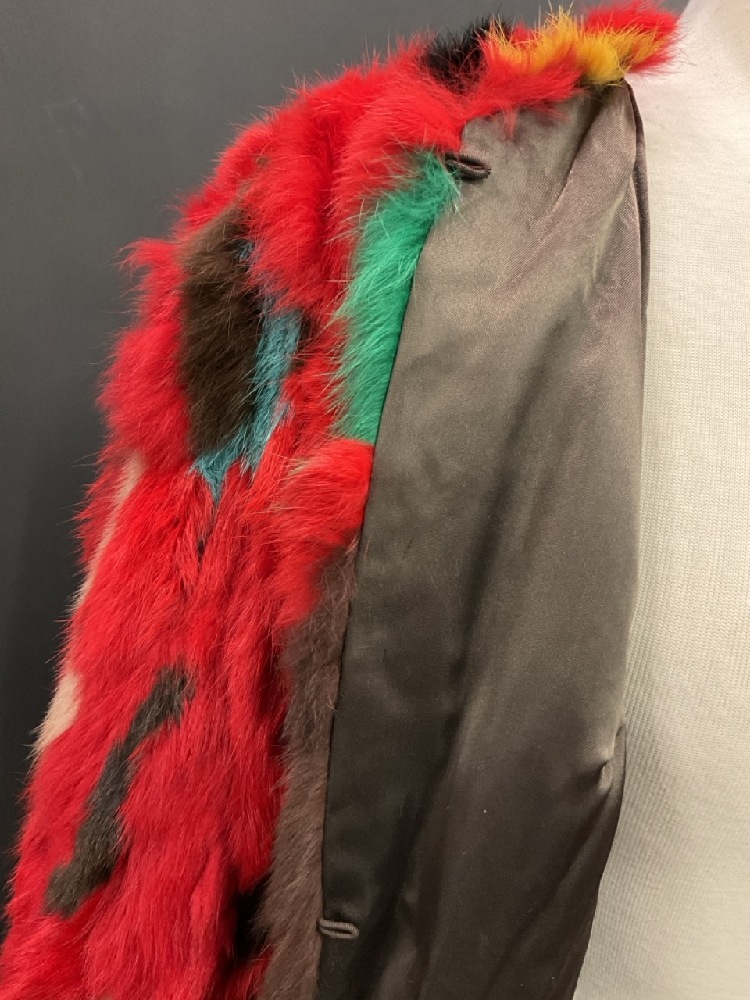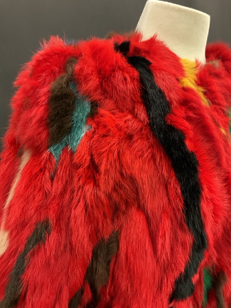 Vintage Red and Multi-Color Print Rabbit Fur Coat.