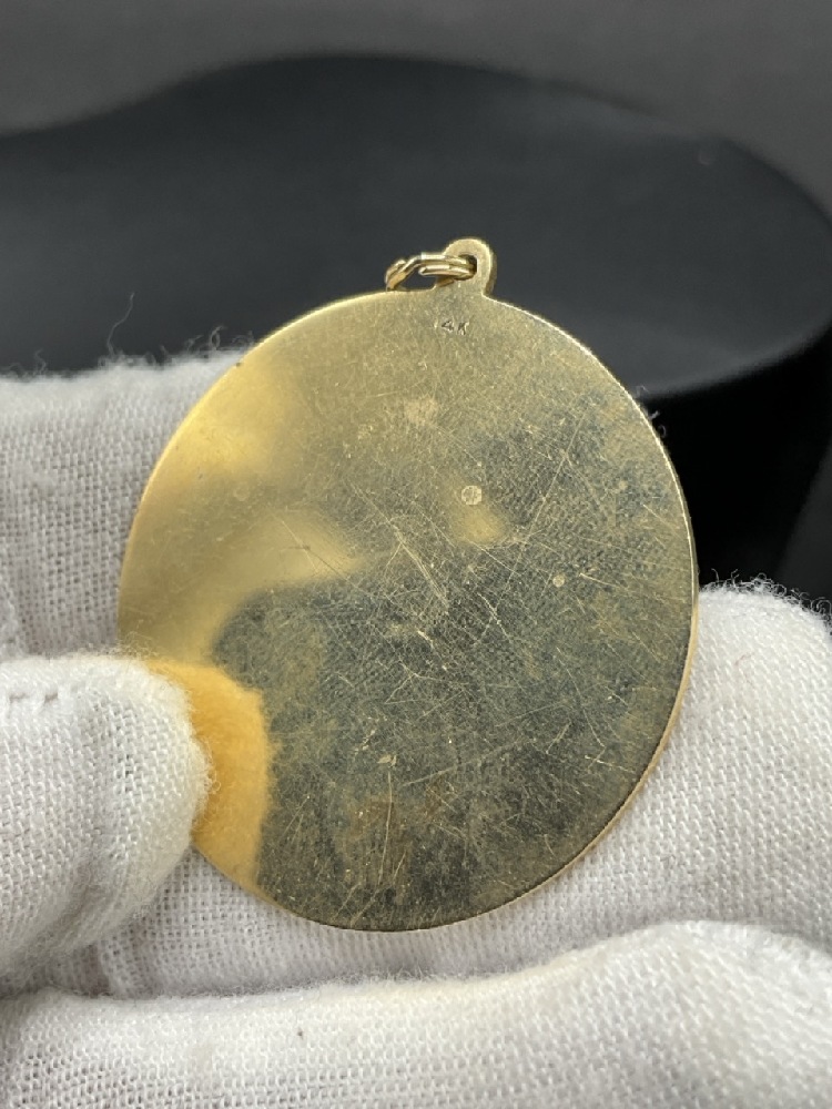 14K Yellow Gold Disc Pendant.