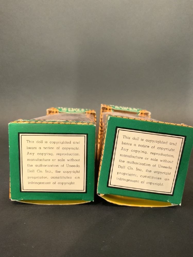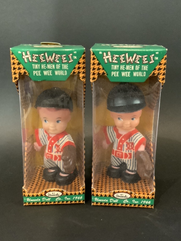 Pair of 1966 Tiny Uneeda “HeeWees” Baseball Player Dolls. Still in original box.