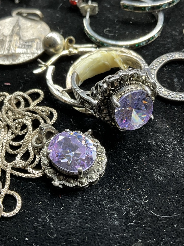 Estate Compiled Sterling Silver Jewelry Group. As seen in photograph preview.