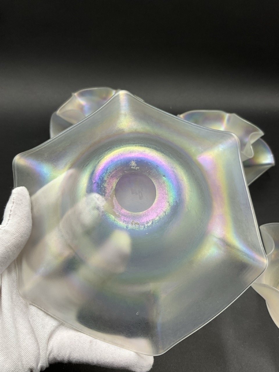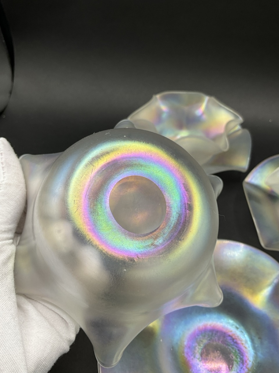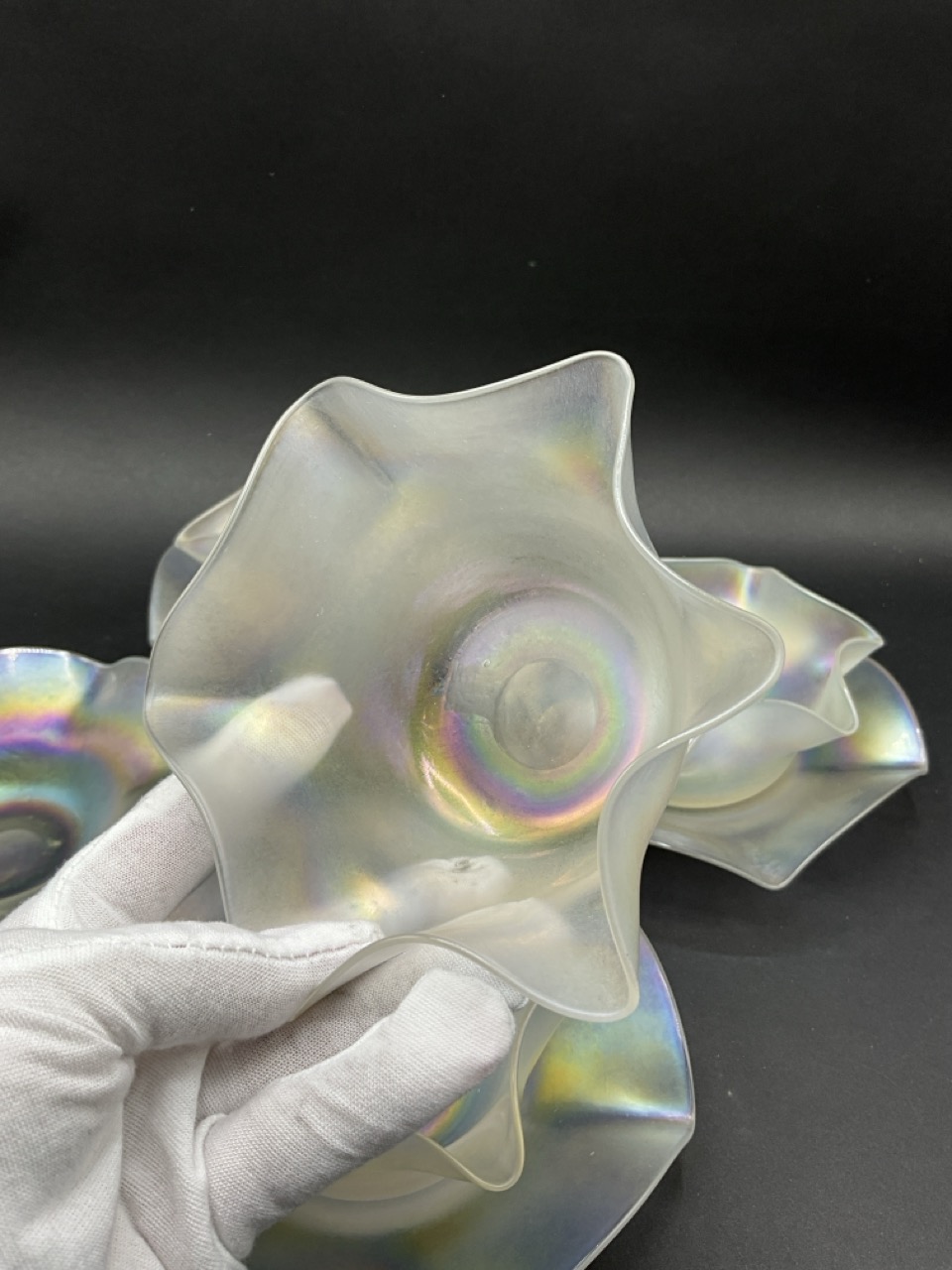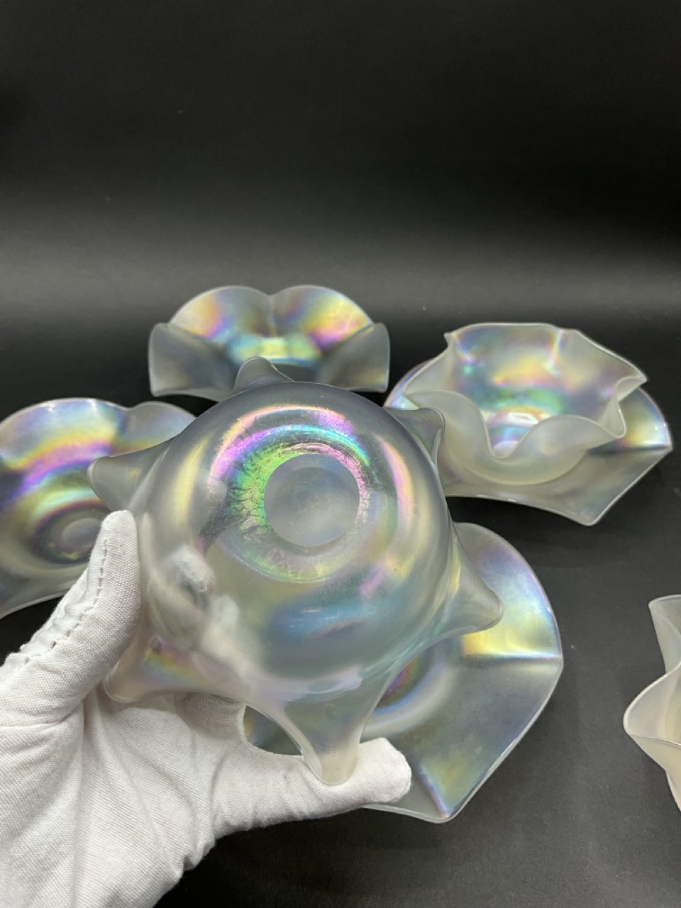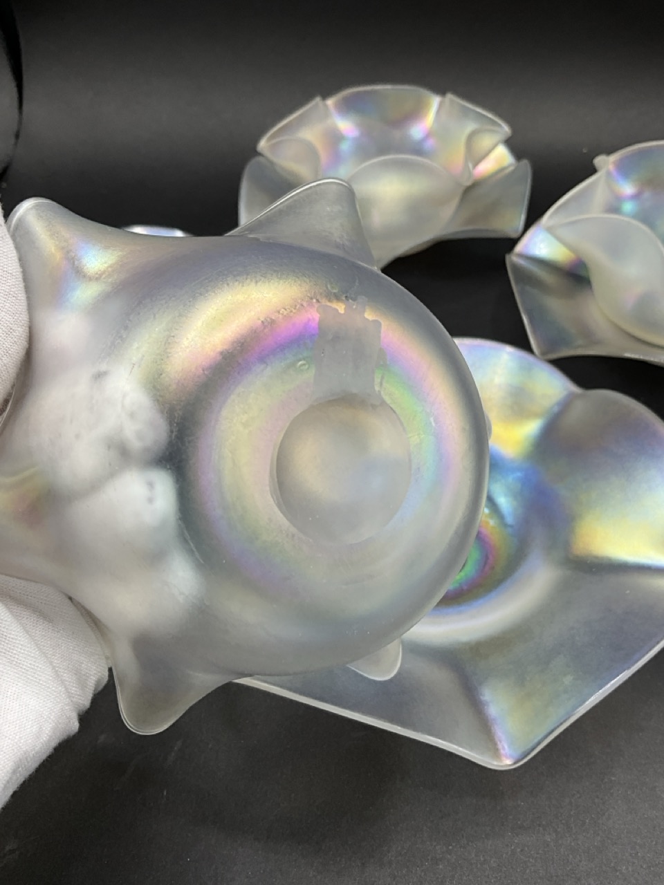 Set of Four Steuben Verre De Soie Fruit Bowls and Underplates. Early 20th century.