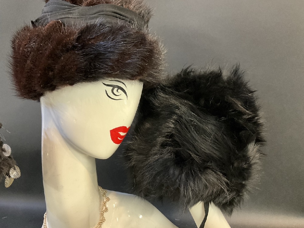(3) Vintage Winter Hats w/ Fur Cap & Muff.