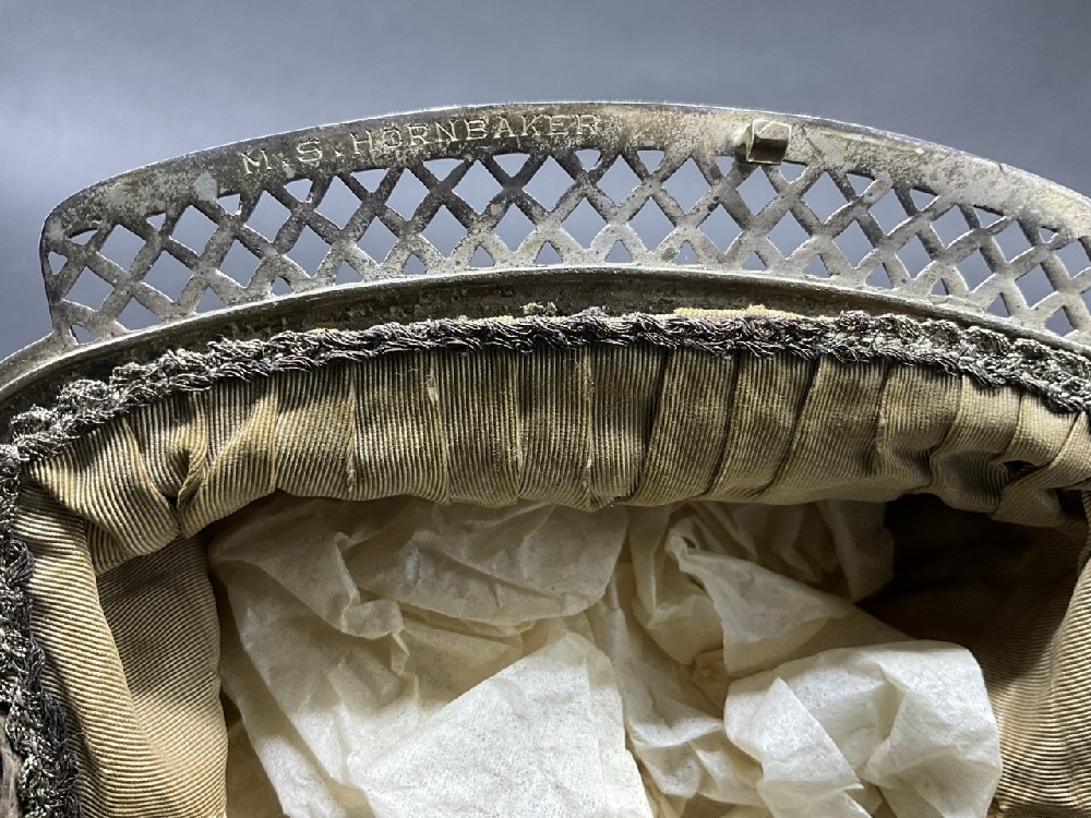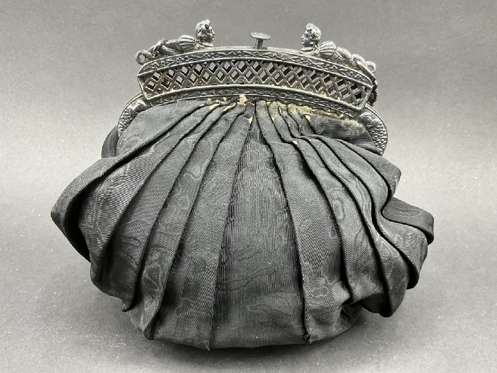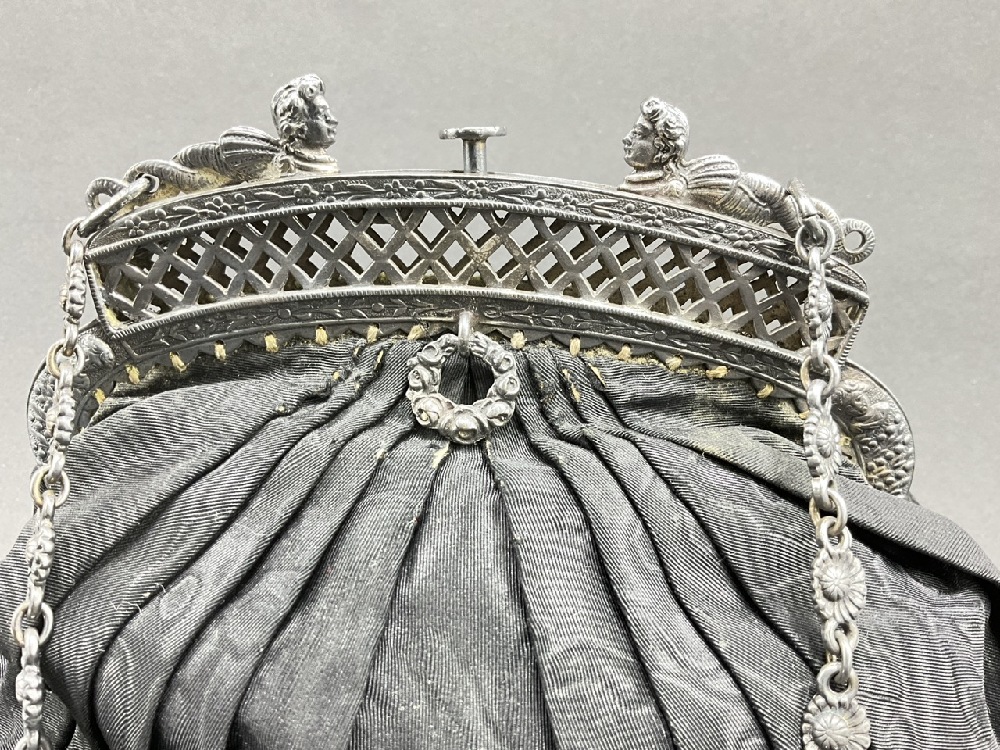 Antique Victorian Satin & Sterling Silver Mourning Handbag - Birmingham England.