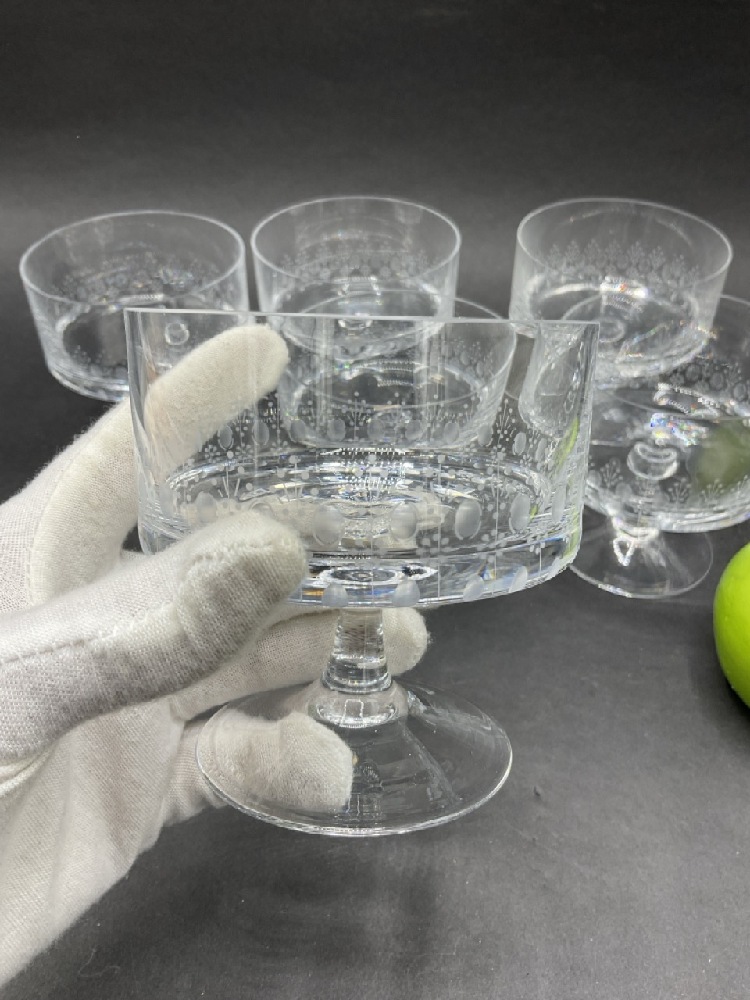 Set of Six (6) Rosenthal Romance Short Champagne or Sherbert Glasses. Designed by Bjorn Winblad. Made in Germany.