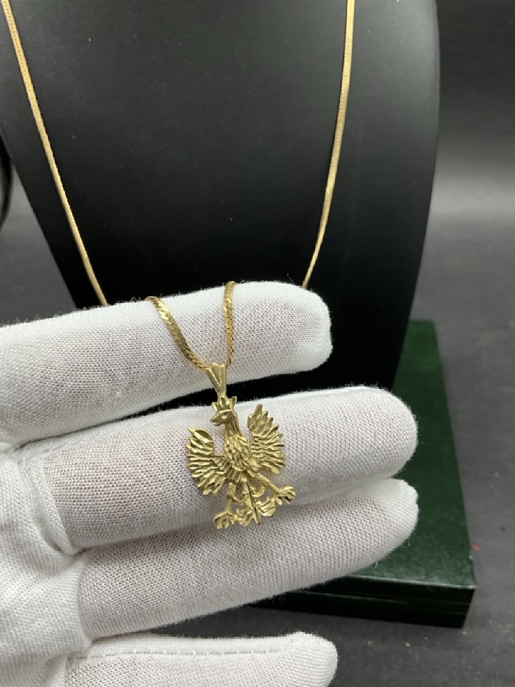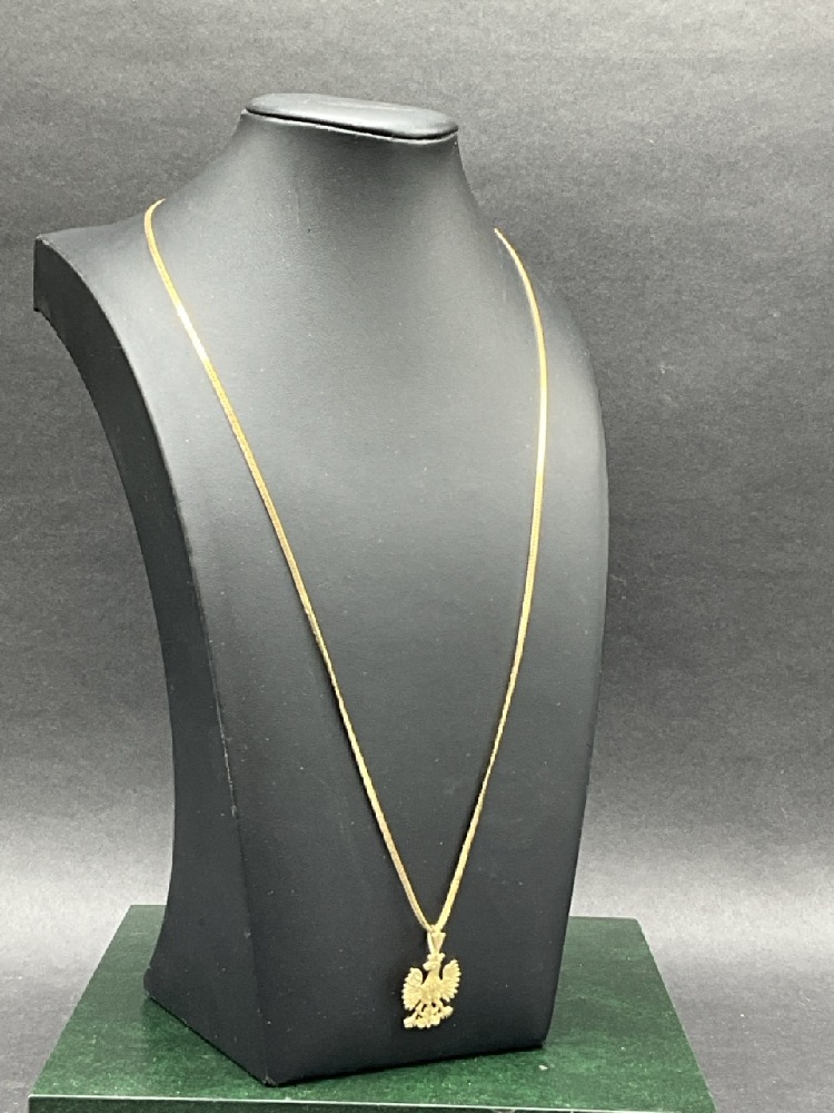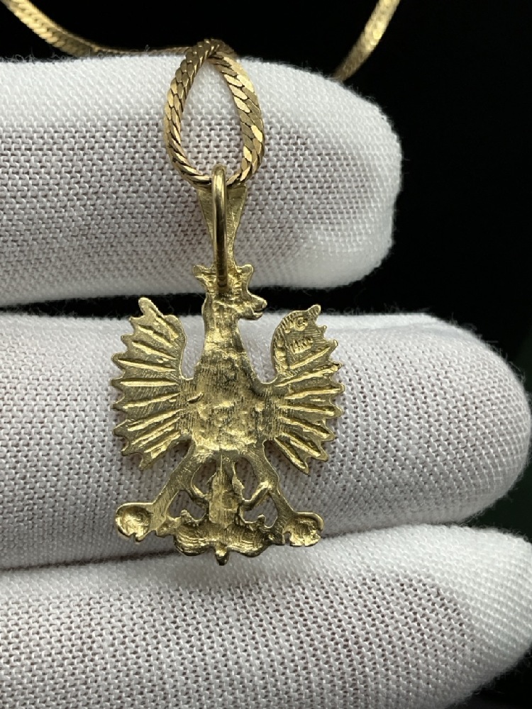 Dimensions: 23” chain 1 1/4” x 3/4” pendant. Polish Eagle