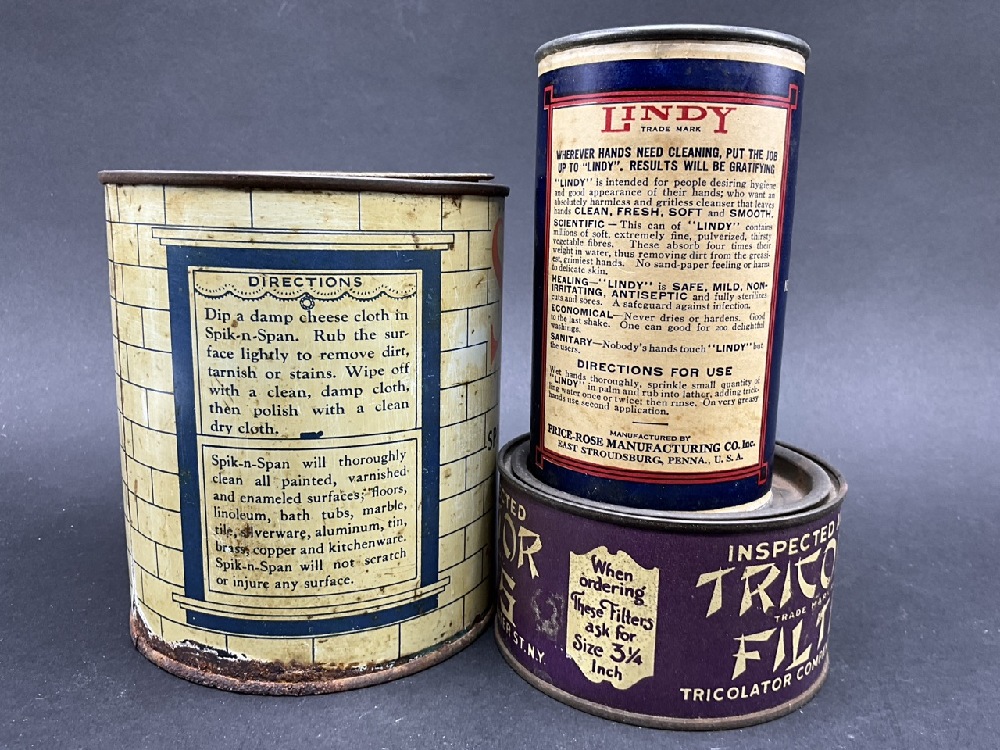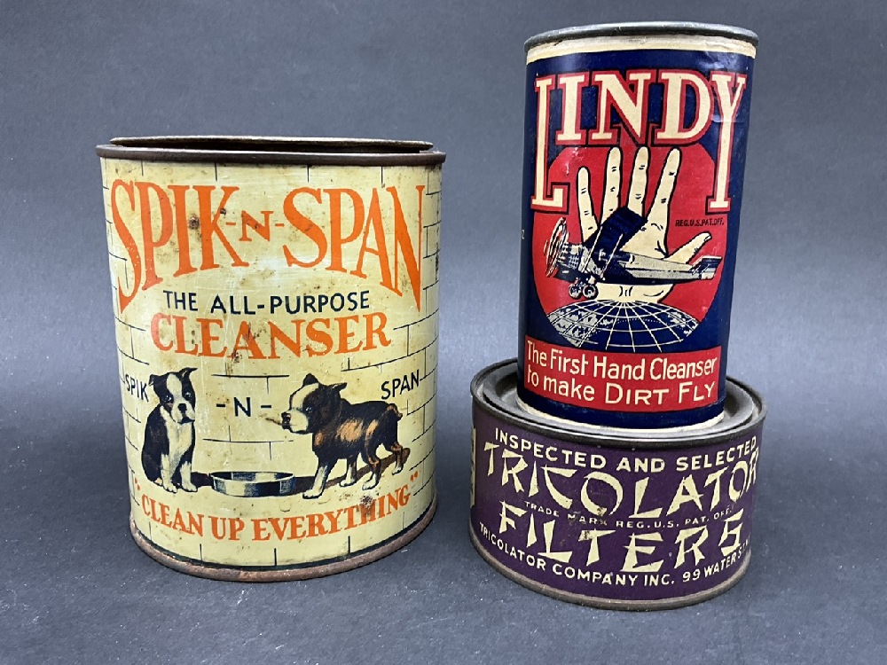 Early Spik & Span Tin, Charles Lindbergh "Lindy" Cleanser with Aviation Airplane and Tricolator Filters Tin.