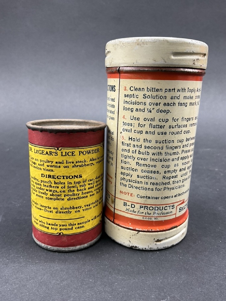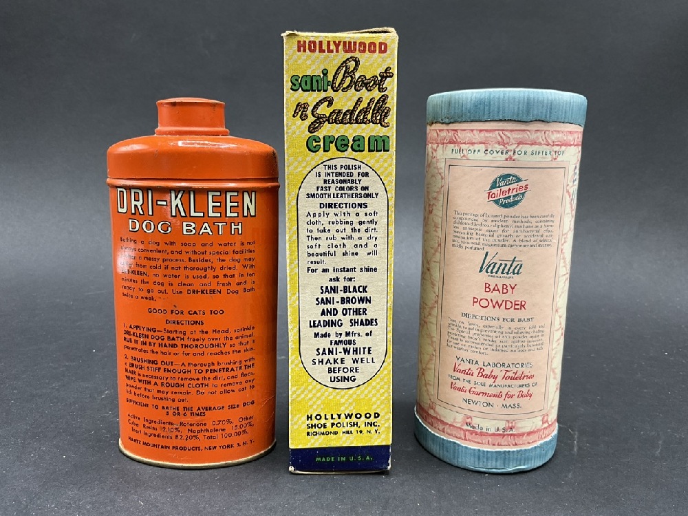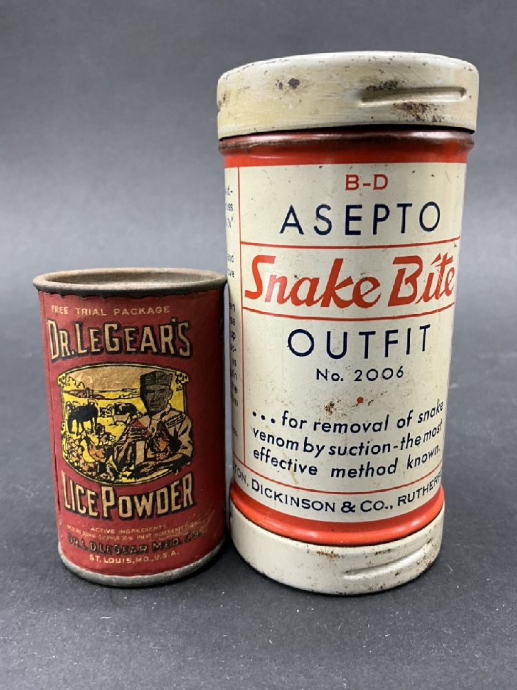 Vintage Advertising Lot - Dr. LeGear’s Lice Powder, B-D Asepto Snake Bite Outfit, Dri-Klein Dog Bath, Hollywood Sani Boot n Saddle Cream, Vanta Baby Powder.