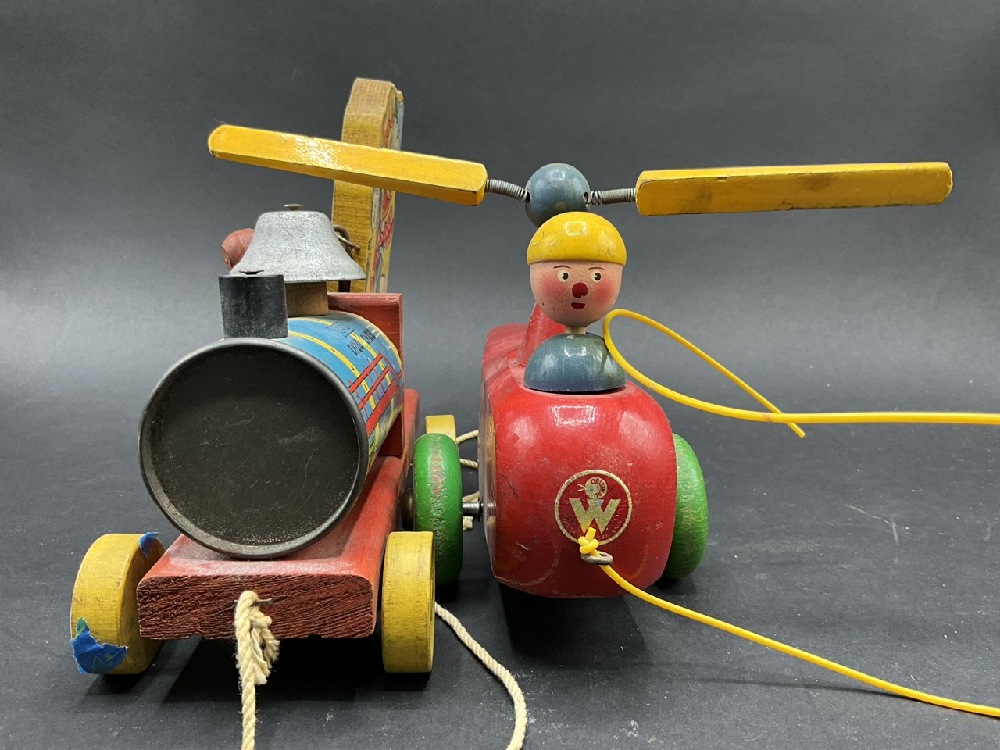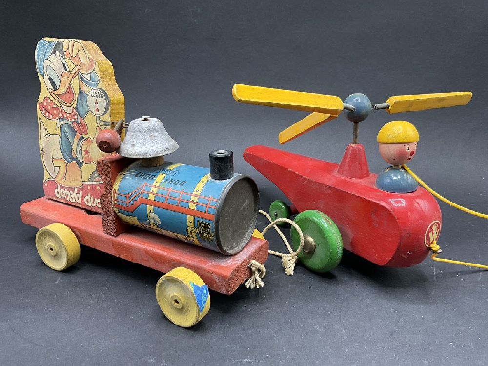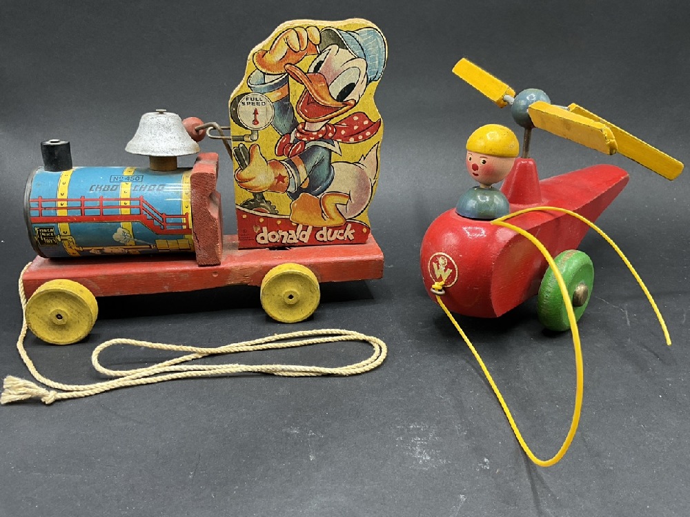 Vintage Pull Toys - Walter Pull Along Helicopter & Donald Duck Choo Choo #450.
