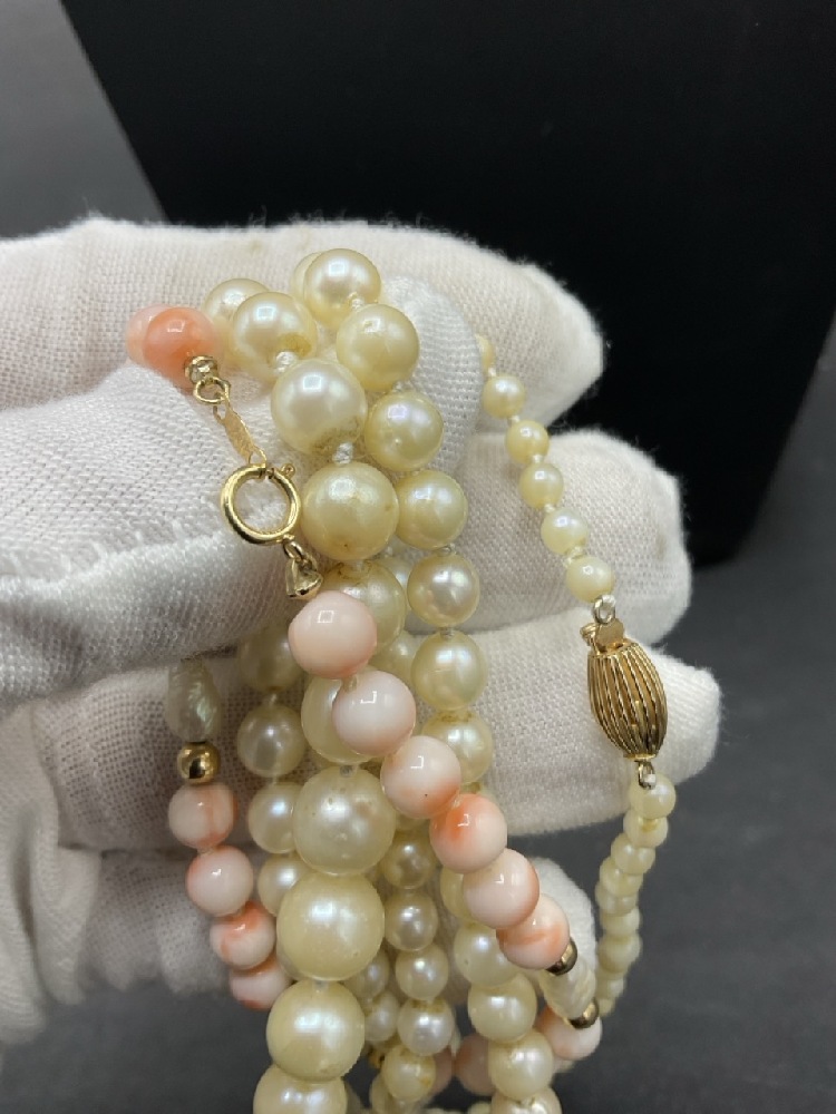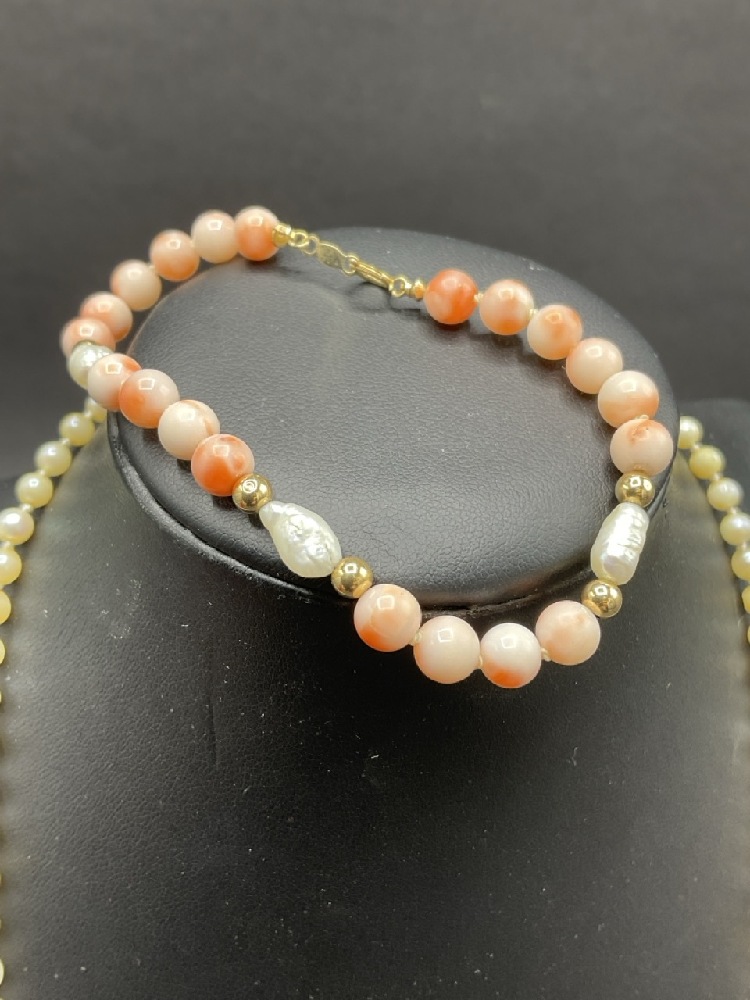 14K Graduated Pearl Necklace and Coral Bracelet.