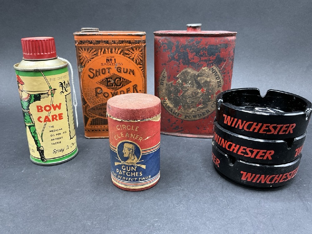 Vintage Gun Related Tins, Cans & Ashtrays - Winchester, Robin Hood, E.C Shotgun Powder, Circle Cleaner, Duck Shooting Powder.