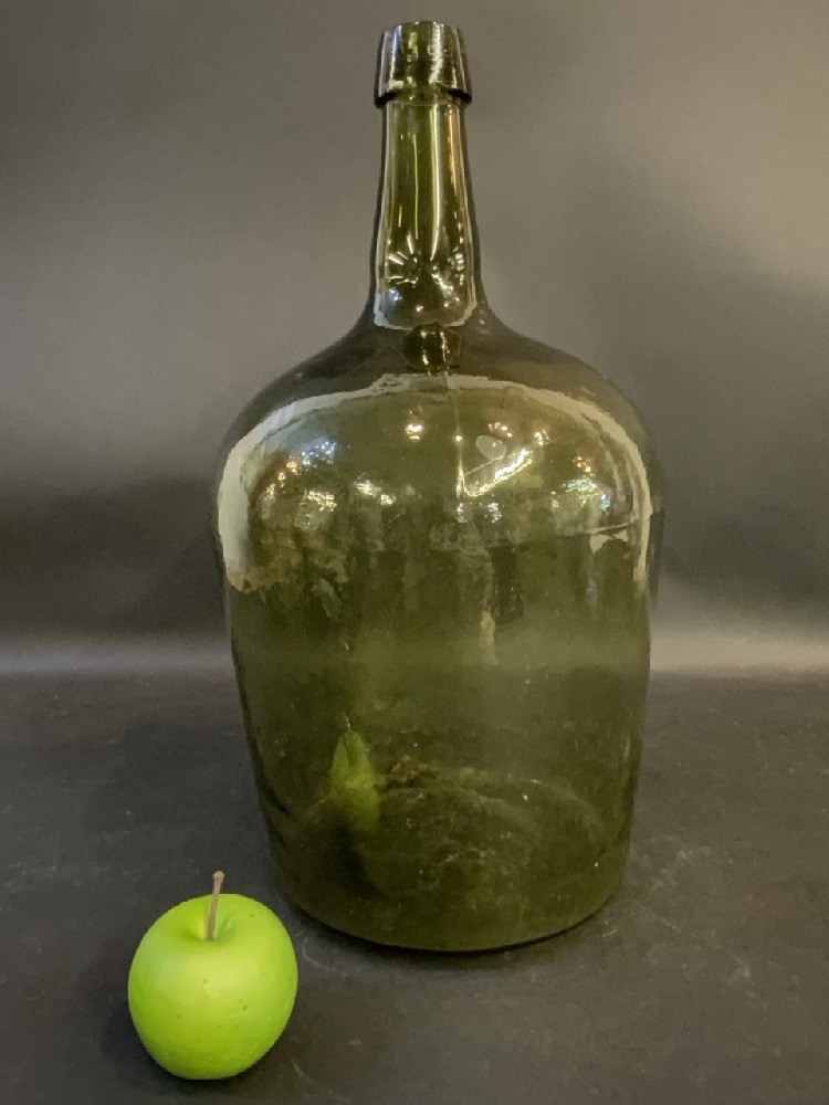 Antique Green Glass Demijohn Bottle.