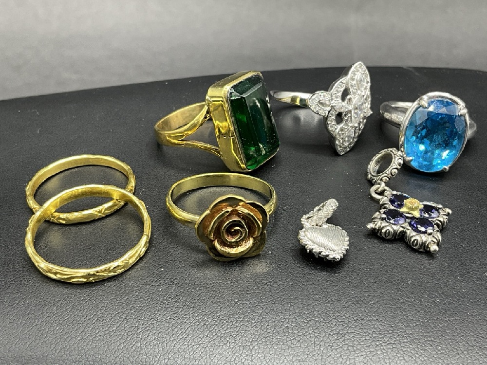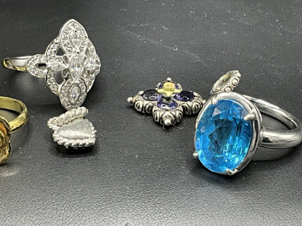 Blue Topaz Sterling Silver Ring, Judith Ripka sterling and Bixby 925/18 pendants and Costume Jewelry. As seen in photograph preview.