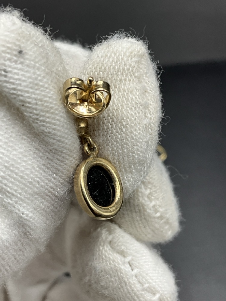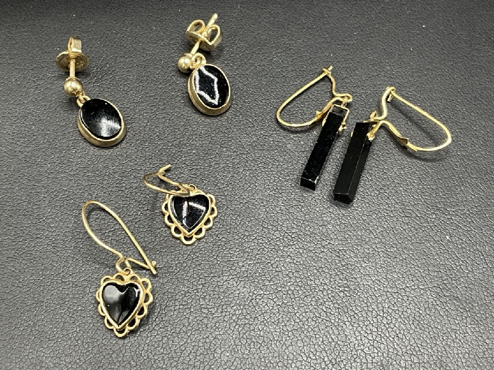 Three (3) Pairs 14K Yellow Gold Black Onyx Earrings.