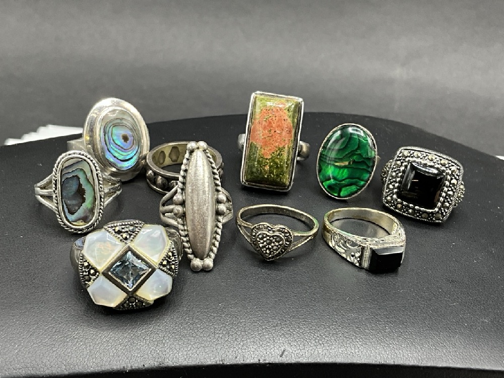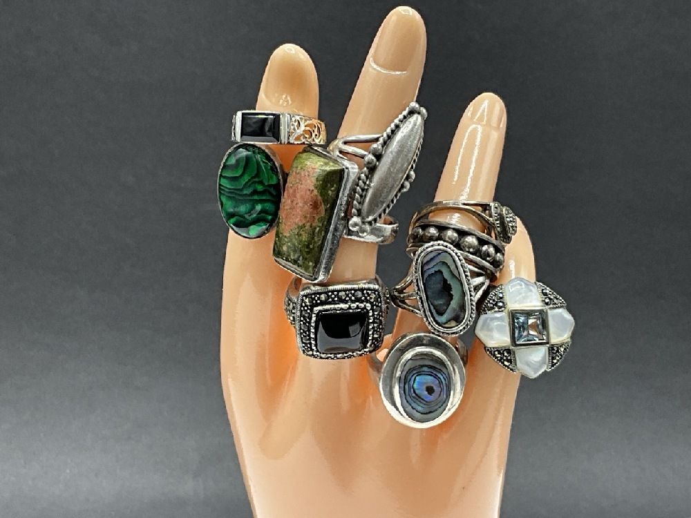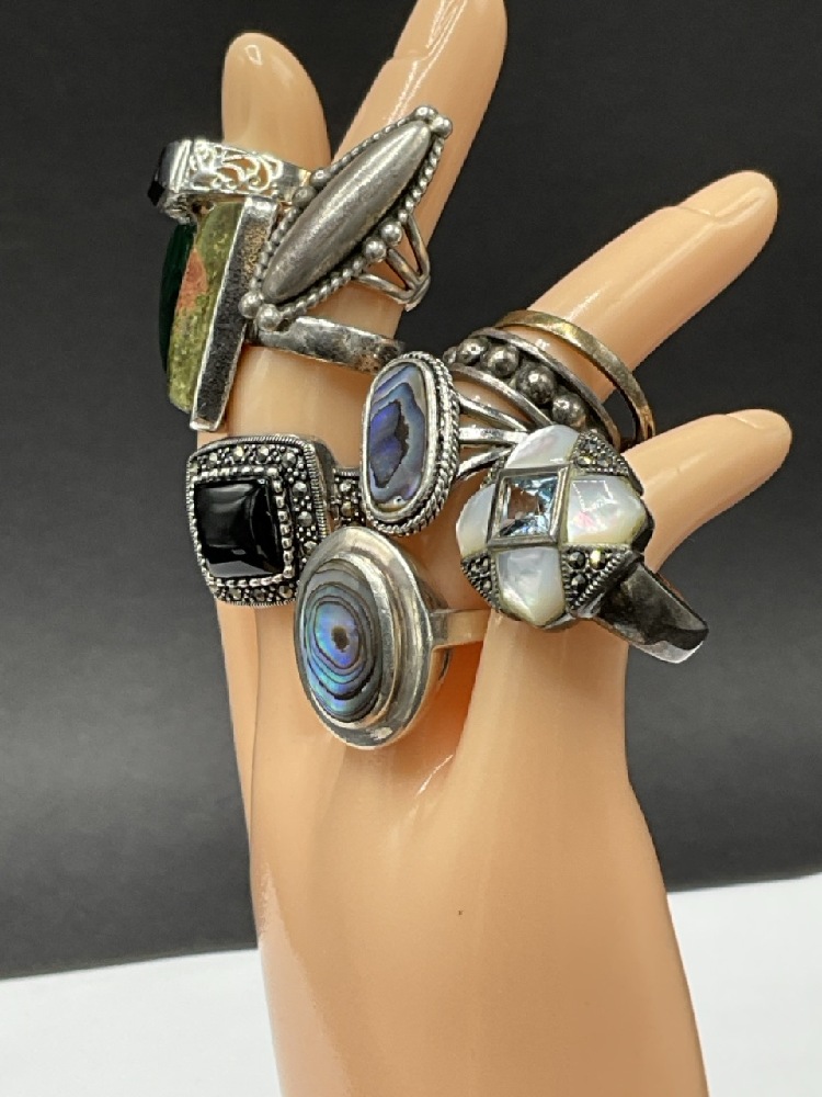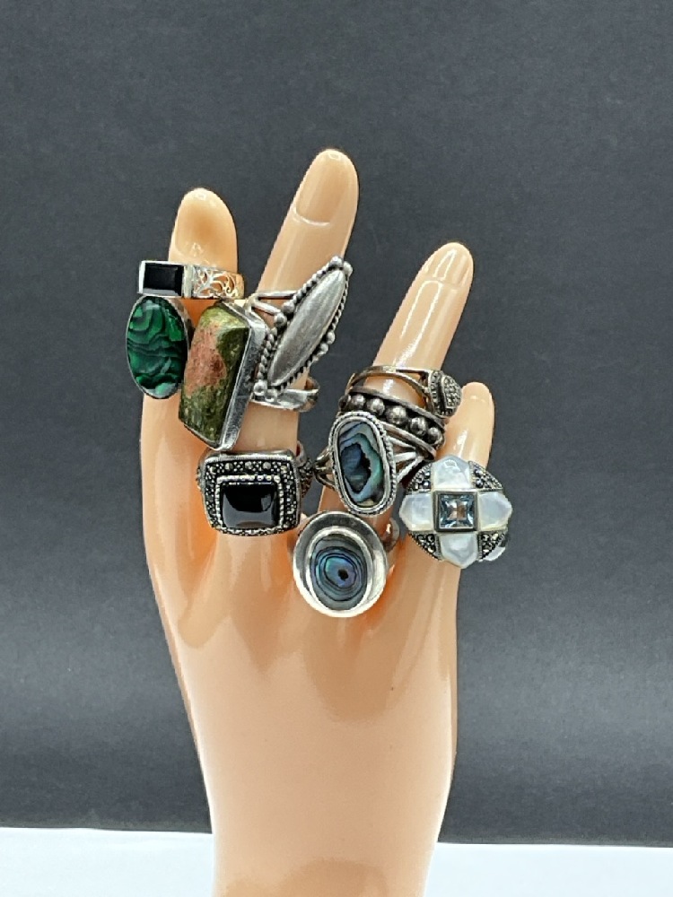 Ten (10) Sterling Silver Ring. Various Sizes. As seen in photograph preview.
