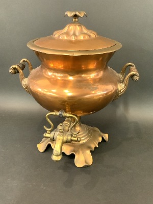Antique 19th Century Englsih Copper and Brass Samovar. Dimensions: 18" X 14" X 8"
