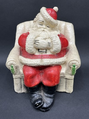 Vintage Santa Chalkware Piggy Bank. Dimensions: 6 1/2” x 6” x 7”