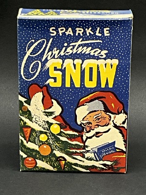 Vintage Box of Sparkle Christmas Snow. Dimensions: 7” x 4 3/4” x 1 1/2”