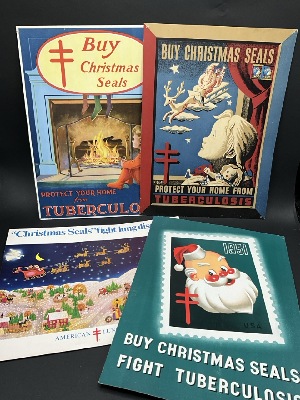 (4) Vintage Christmas Seal Cardboard Signs. Dimensions: 15” x 11”