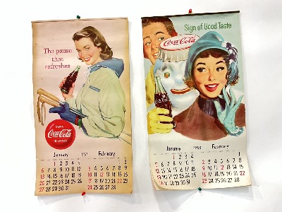(2) Vintage 1957 & 1958 Coca Cola Calendars. Dimensions: 9" X 12" Approx.