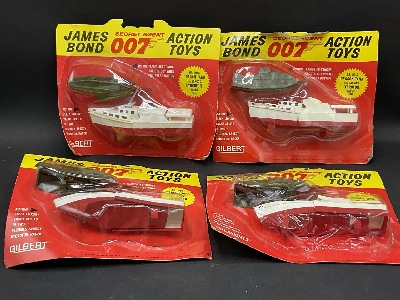 Four (4) 1960’s Gilbert James Bond 007 Action Playsets. Dr. No's Dragon Tanks and Largo's Hydrofoil Yacht.