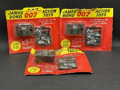 Three (3) 1960’s Gilbert James Bond 007 Action Playsets. Secret Agent Briefcase and M's Desk.