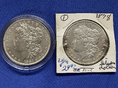 1878 and 1881 U.S. Morgan Silver Dollars.