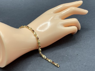 14K Yellow Gold Garnet Bracelet. Dimensions: 7" Length. Total weight: 7 grams.