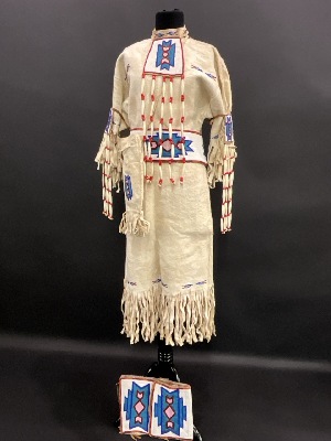 Older Native American Indian Buckskin Dress w/ Beadwork Accessories. Native American Buckskin Dress Dimensions: 20” Chest, 46”L, 16” Arms, Leggins 14”L x 9”H Good Condition, Please See Photograph Preview