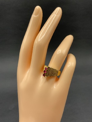 18K Yellow Gold Ruby Pyramid Form Ring. Size 6.5 Total weight: 5.2 grams.