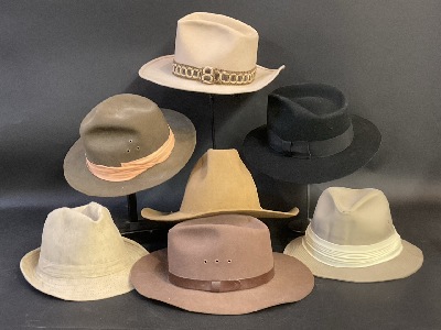 (7) Vintage Western, Winter & Spring Men’s Hats - Broner, Empire State Hats - Stirrup, Jessica’s Feet - The Roundup, Hat Check - Safari. Dimensions: 7” - 8”