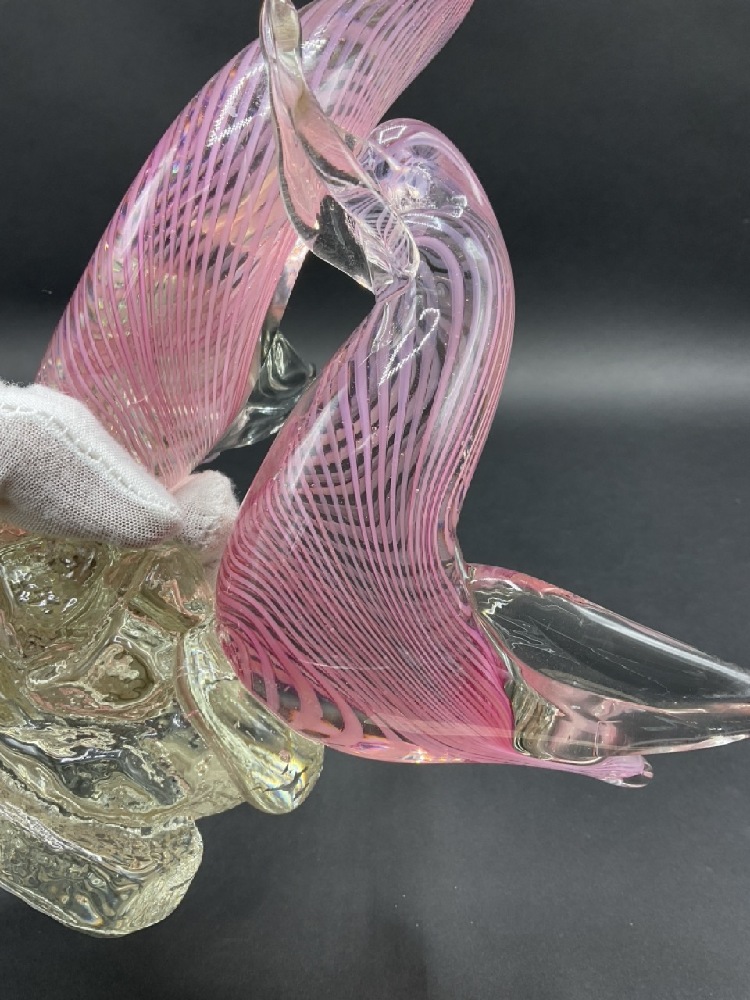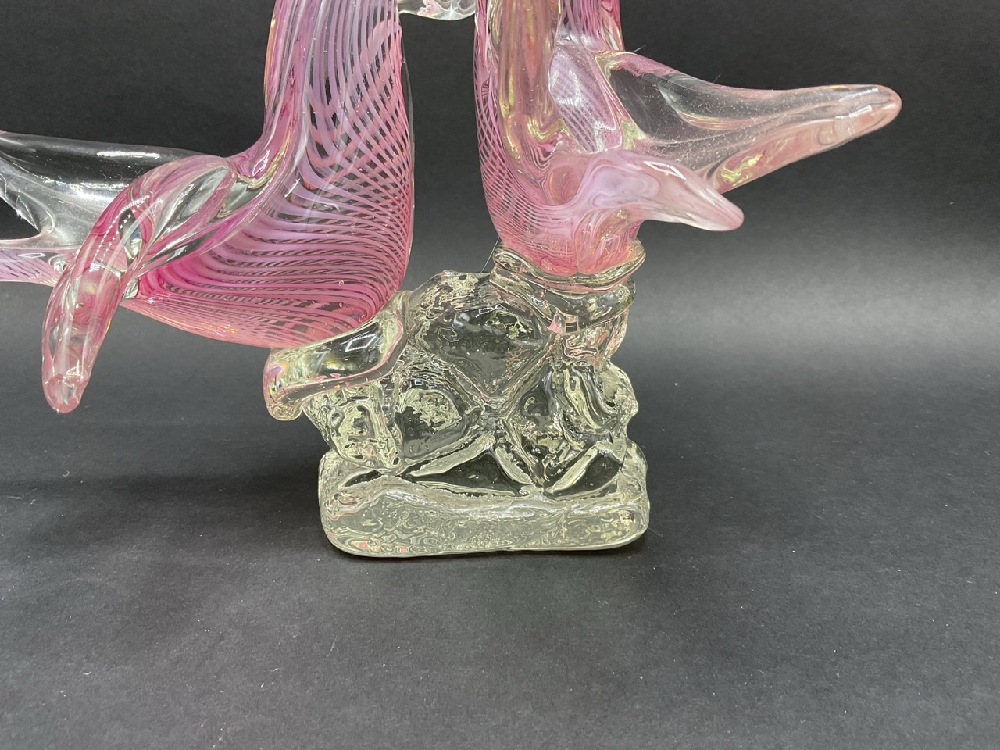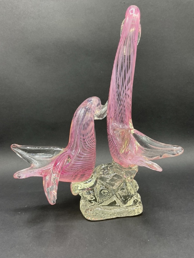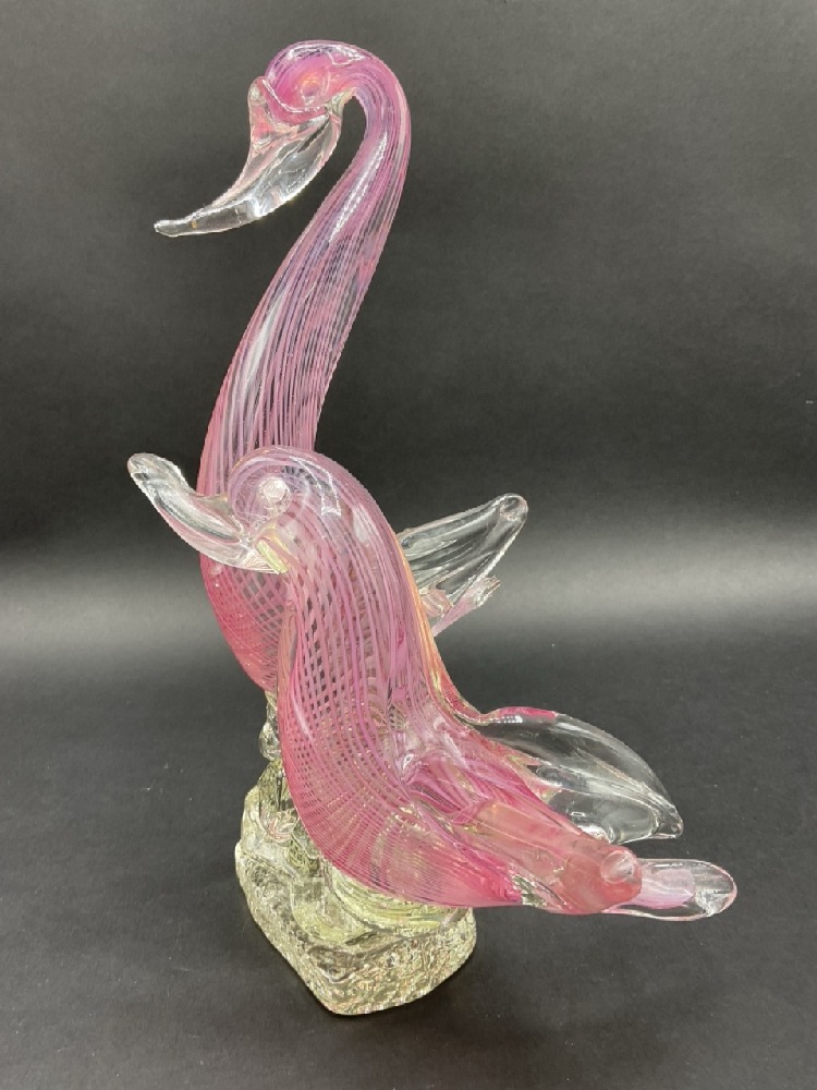 Murano Venetian Handblown Filigrana Pink Swirl Duck.